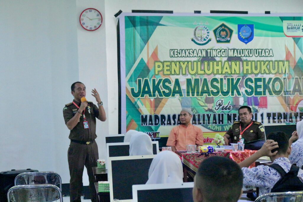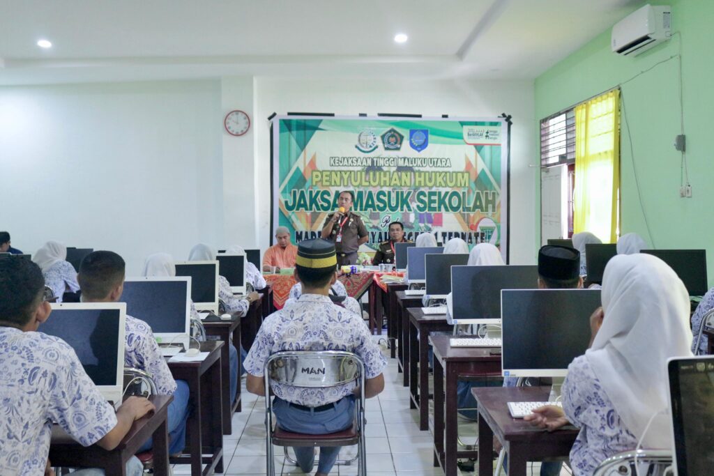 Ternate_ Guna meningkatkan kesadaran hukum bagi masyarakat terutama pelajar tingkat lanjutan atas, Kejaksaan Tinggi Maluku Utara menggelar Program Jaksa Masuk Sekolah (JMS). Kegiatan yang dilaksanakan pada hari kamis (12/12/24) bertempat di Laboratorium komputer MAN 1 Ternate ini mengusung slogan “Kenali Hukum, Jauhkan Hukuman” dengan melibatkan siswa MAN 1 Ternate perwakilan dari kelas X hingga kelas XII.