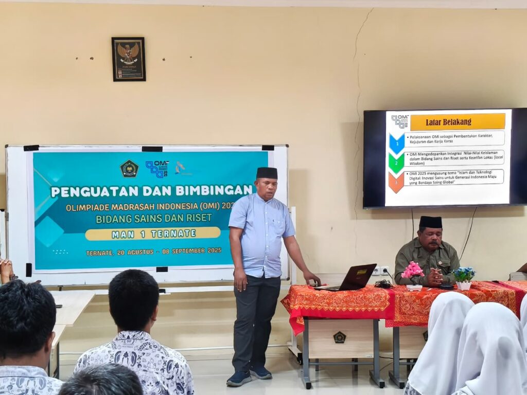 Ternate_Dalam rangka mempersiapkan diri menyongsong pelaksanaan Olimpiade Madrasah Indonesia (OMI) Tahun 2025, Madrasah Aliyah Negeri 1 Ternate menggelar Penguatan dan Bimbingan bagi siswa-siswa peserta OMI di bidang Sains dan bidang Riset.