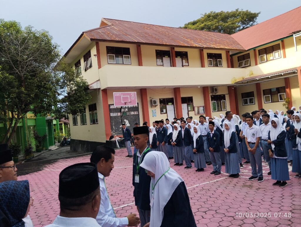 “untuk itu dalam menghadapi ujian kali ini saya pesankan kepada peserta didik semua agar tetap menjaga motivasi belajar selama menghadapi ujian berlangsung, berdoa, dan jangan panik dalam mengerjakan soal. Semoga anda dapat memperoleh hasil terbaik dalam ujian madrasah kali ini”, ujar H. Ridwan.